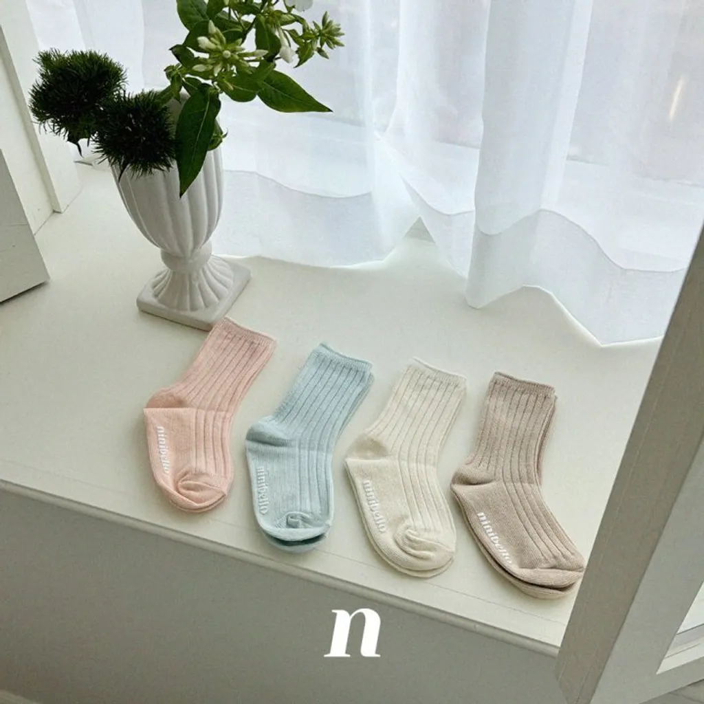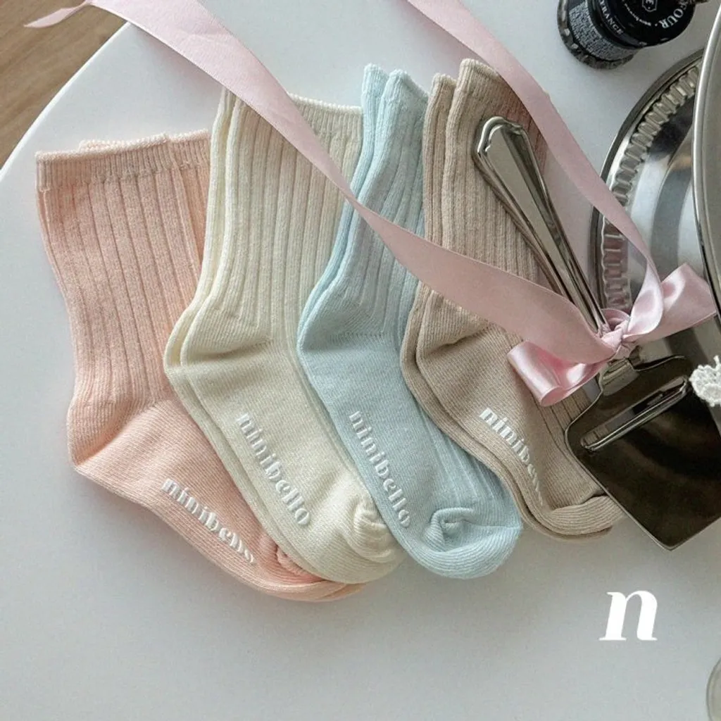 現貨-kids粉嫩彈性Logo止滑襪子四入組